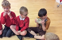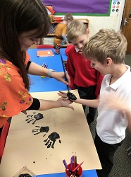 On Monday 7th January, Year 3 started the new year by returning to the Stone Age. Children and adults dressed up, learnt about cave paintings and created their own art using paint, charcoal, chalks and wet clay. Special visitors helped us have even more fun and learn lots more about Stone Age times. The children even handled the teeth of giant elks and woolly mammoths!